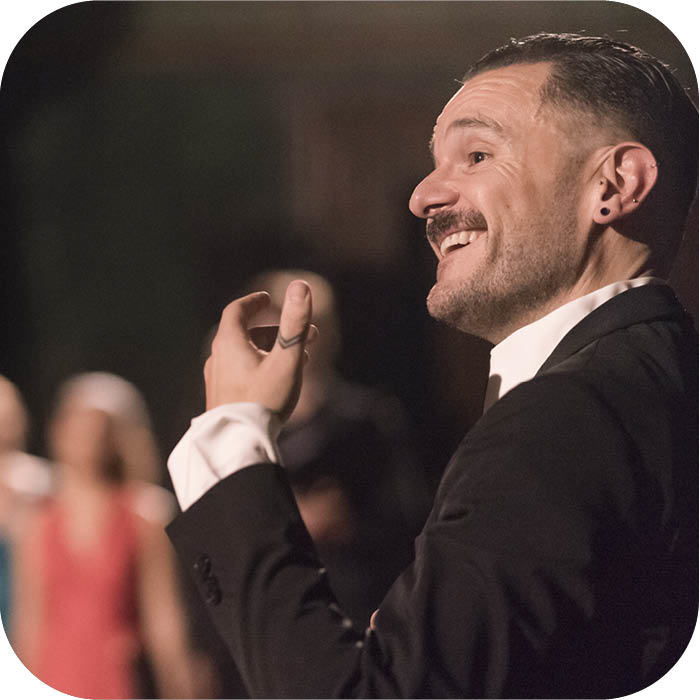 Diplomato in musica corale e direzione di coro, in didattica della musica e in composizione presso il Conservatorio G. Verdi di Torino, si dedica da sempre alla contaminazione tra teatro e musica, collaborando ad alcune produzioni degli allievi del Teatro Stabile di Torino e con il Laboratorio Teatro Settimo scrivendo musiche per L. Ronconi, G. Vacis, D. Castaldo, M. Bricco, F. Gagliardi, C. Panti Liberovici, per il Teatro Stabile della Toscana, per la Fondazione Teatro Nuovo e in numerosi spettacoli di teatro e circo-teatro con A. Barbi e i fratelli Ochner. Sue composizioni hanno ricevuto riconoscimenti a livello nazionale e sono state eseguite ed incise sia in Italia che all’estero (si segnala il cd Racconti con la collaborazione di L. Littizzetto, M. Di Mauro e L. Costa). Dal 1997 è direttore artistico della Corale Universitaria di Torino, con la quale si è esibito in numerose manifestazioni, festival e concorsi in Italia e in Europa. Ha all’attivo diverse esperienze come vocalist e cantante, nell’ambito sia del teatro-canzone che in quello della musica leggera che nel campo della musica antica. È docente di ruolo e referente per l’USR del Piemonte del Laboratorio Sergio Liberovici per il quale si occupa sia di formazione insegnanti che del recupero della produzione del grande maestro torinese. Nel 2005 fonda l’Associazione OfficinaMusiké di cui è direttore artistico e con la quale coordina e promuove attività di formazione ed educazione musicale su tutto il territorio italiano, con progetti dedicati alla coralità, al teatro musicale e alla didattica per la prima infanzia. Dal 2008 è specializzato in musical-theatre diventando direttore artistico della sezione di Torino referente di canto del progetto nazionale Matilda Italian Academy di TodoModo-MusicALL sotto il patrocinio della Royal Shakespeare Company. È fondatore dell’unico coro italiano extra-accademico dedicato al musical-theatre, i SingersOnStage. Lavora come direttore musicale e vocal coach in numerose produzioni professionali nazionali, tra cui l’ultimo Sweeney Todd (2019/2020) con F. Taverni, S. Leonardi e L. Giacomelli Ferrarini, regia di C. Insegno e Piccolo principe, regia di E. Gamba, produzione del Teatro Stabile di Firenze.
