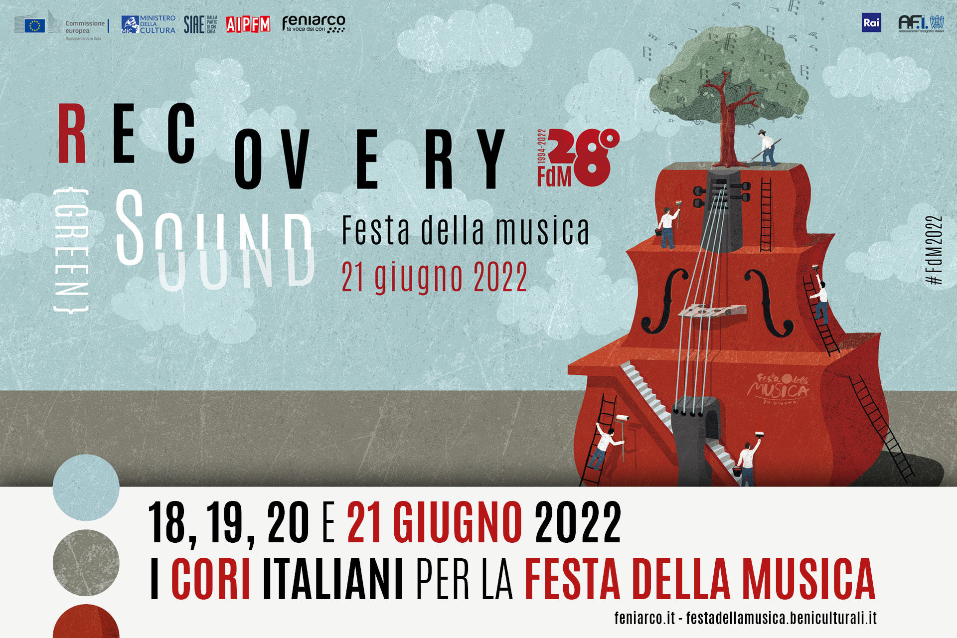 Vogliamo cogliere nella Festa della Musica un'occasione di valorizzazione dell'attività corale in tutta la penisola. Per la Festa della Musica edizione 2022 oltre 100 i concerti corali in programma nelle diverse regioni italiane, articolati in quattro differenti giornate. Concerti all'aperto, dalle piazze ai rifugi, in luoghi di culto come cattedrali e abbazie e negli spazi della cultura come musei e biblioteche. Musica corale ovunque, per far risuonare nuovamente le voci della coralità italiana. Feniarco si fa promotrice di questa importante iniziativa e offre un concreto sostegno ai cori sostenendo le spese SIAE e promuovendo l'iniziativa su tutti i canali di comunicazione.