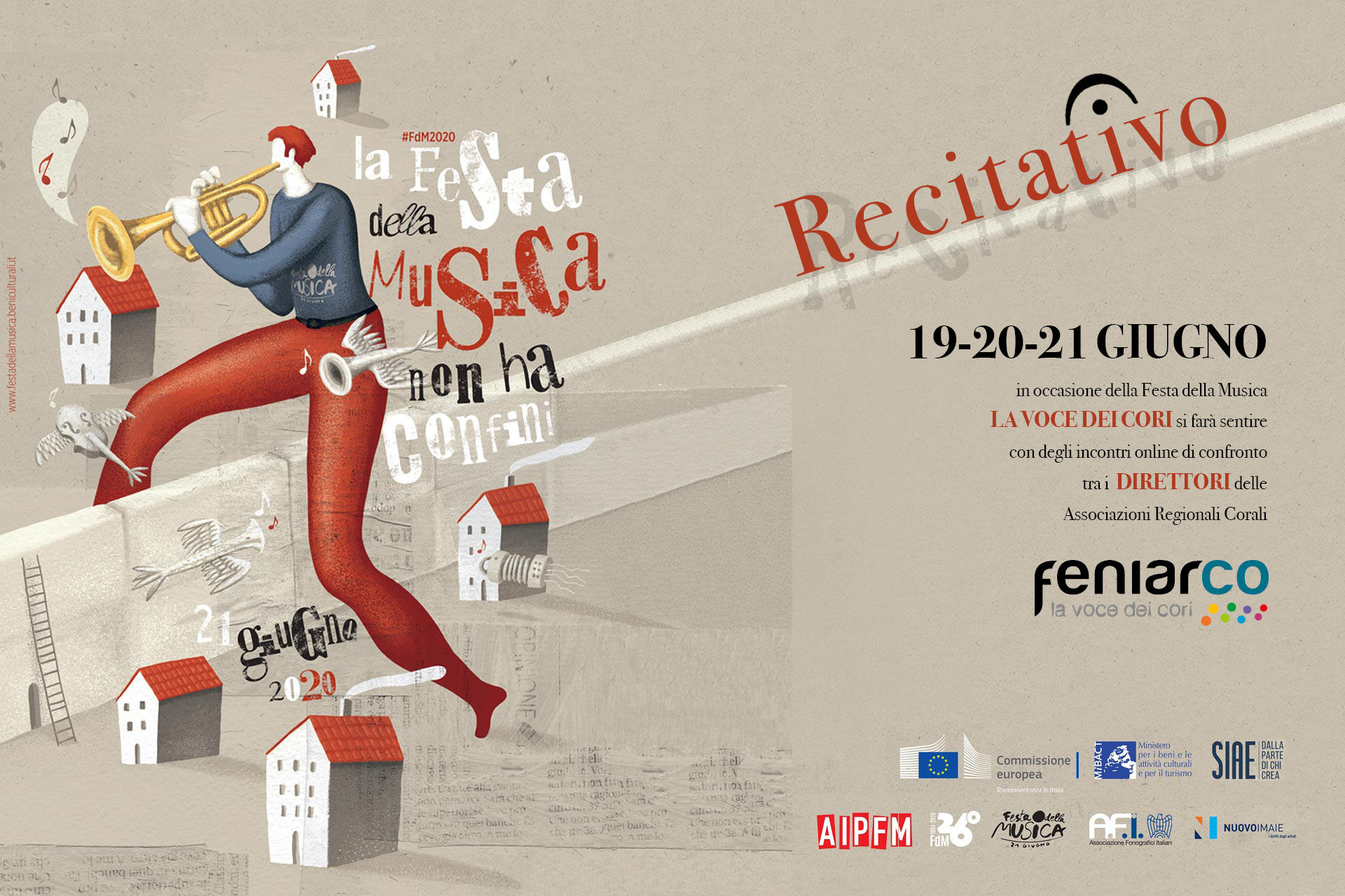 Aanche per il 2020 l’AIPFM, in stretta collaborazione con il Mibact, organizza la Festa della Musica con lo slogan “la festa della musica non ha confini”.